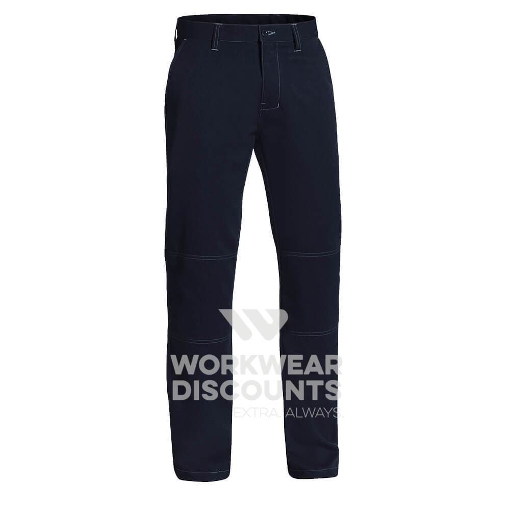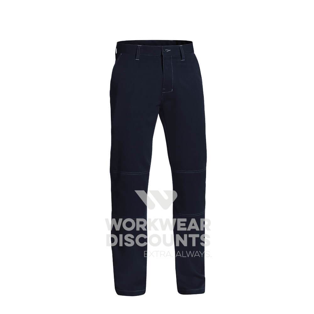 These pants are lower waisted and slightly slimmer in the leg than their Traditional fit counterparts. Although theoretically, they measure to be the same size, these 2 key differences will make them 'feel' smaller than the other cuts. For a looser fitting alternative, look for Bisley Traditional Fit pants.