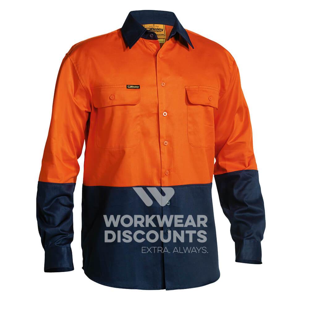 Bisley BS6267 Hi-Vis Cotton Drill Shirt Long Sleeve